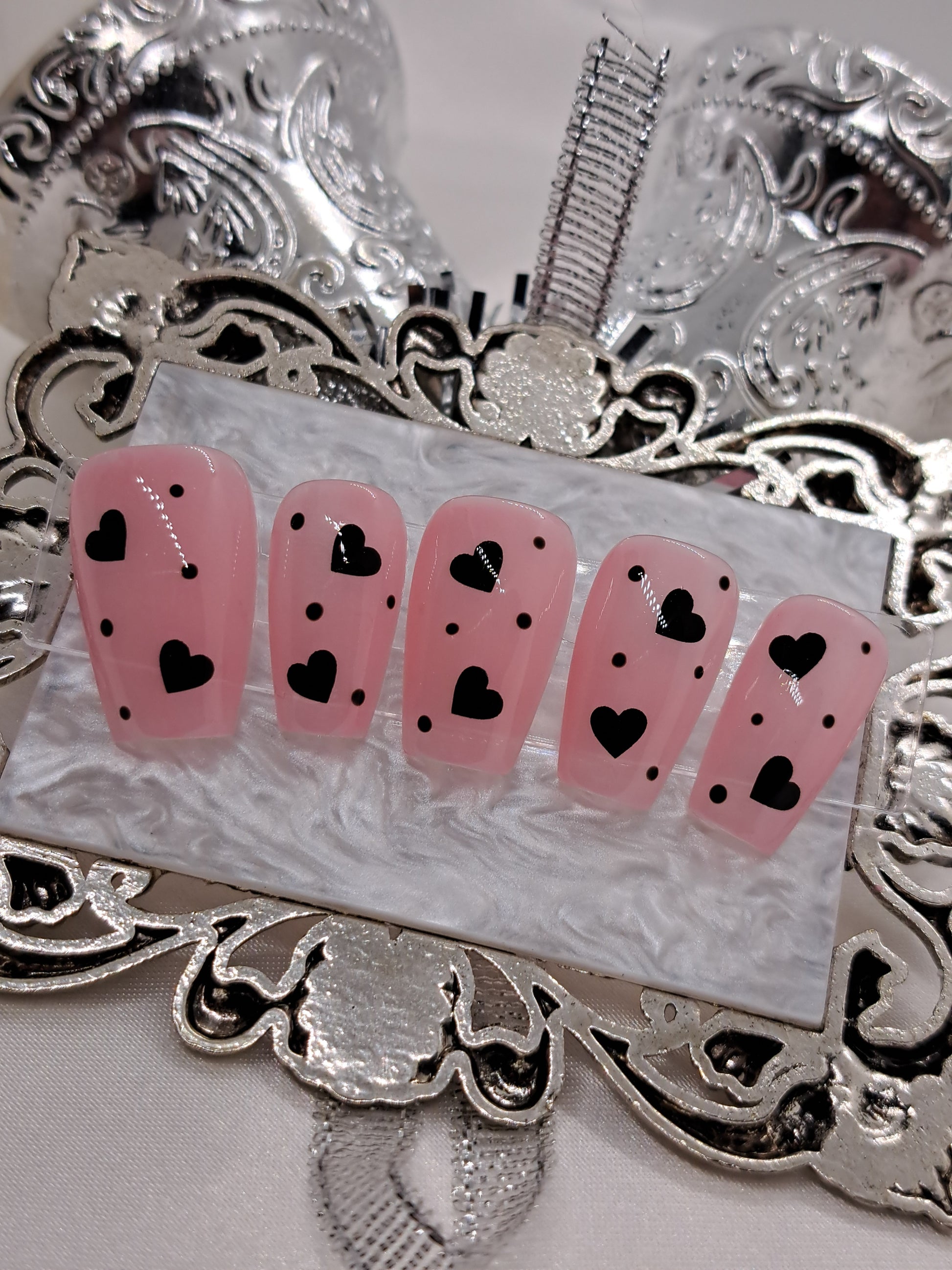 Experience love at first sight with First Date flutters. These press on nails are adorned with hearts that will have your nails looking charming and sweet. Get ready to impress on your next date with these romantic and easy-to-apply nails.