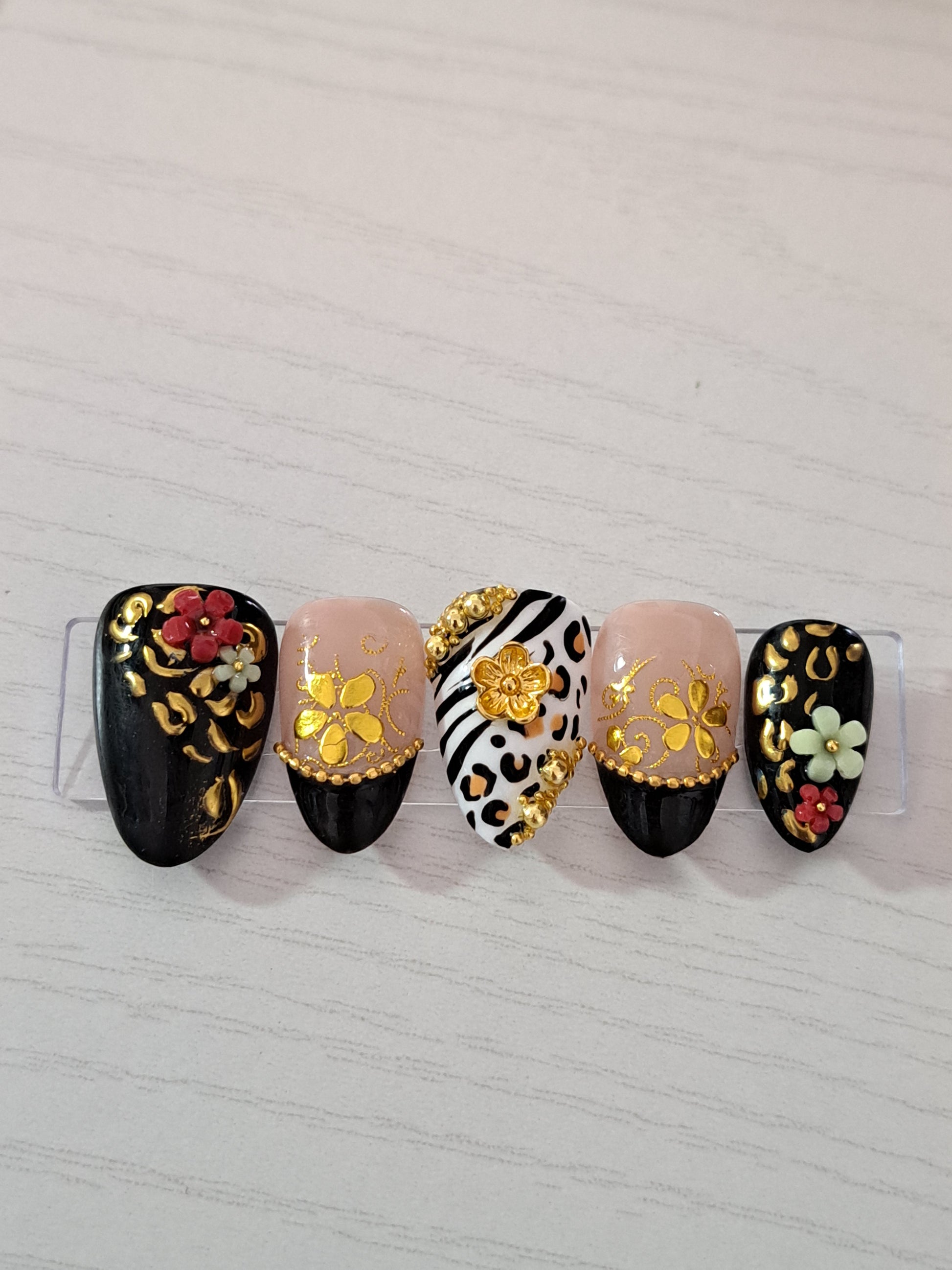 The Fusion: Hand-detailed integration of jet-black zebra motifs and honey-toned leopard spots.